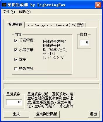 软件介绍: 该工具可生成随机的密钥,当做密码,也可生成DES加密算法的密钥.