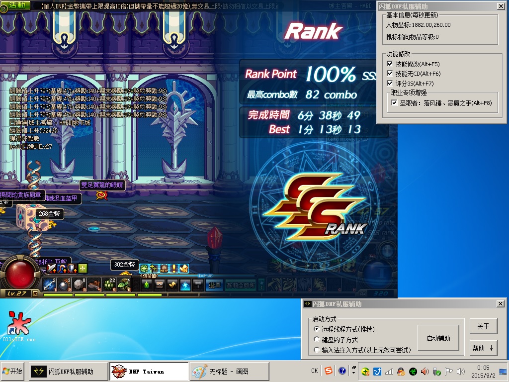 一、此外挂适用于部分DNF台服私服版本,如某华人DNF(官网地址为两位数字和三位字母.com,请自行百度),测试服务器为该私服一区,理论支持其他私服,不支持国服!