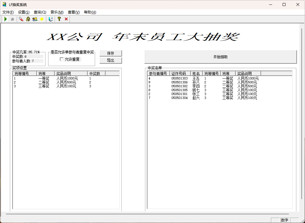 [软件开发]LF抽奖系统 1.0 软件名称:LF抽奖系统 1.0软件介绍:上学时的某次VC++作业,设计抽奖用的。。。 我的作品 #VC #MFC [软件开发]LF抽奖系统 1.0 http://lfmem.com/我的作品/LF抽奖系统/ 作者 LightningFox 发布于 2008年9月10日 许可协议 [转载]正确填写票据和结算凭证的基本规定 上一篇 [软件开发]安全垃圾文件清理批处理 by LightningFox beta 0.1 下一篇